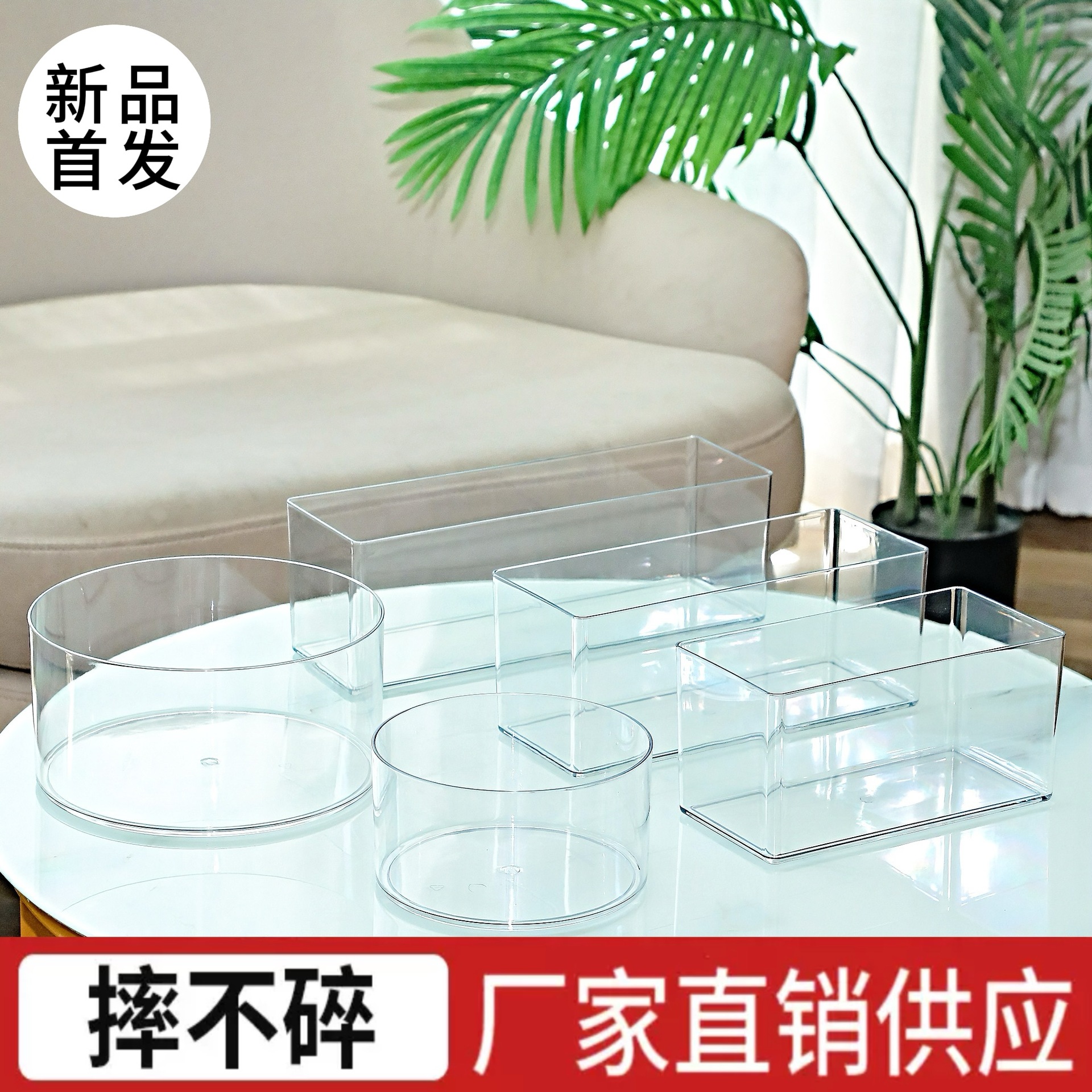 ラウンド水槽プラスチック一体成型落下防止、壊れにくい、高透明模造ガラスリビングルーム小型デスクトップエコ水槽