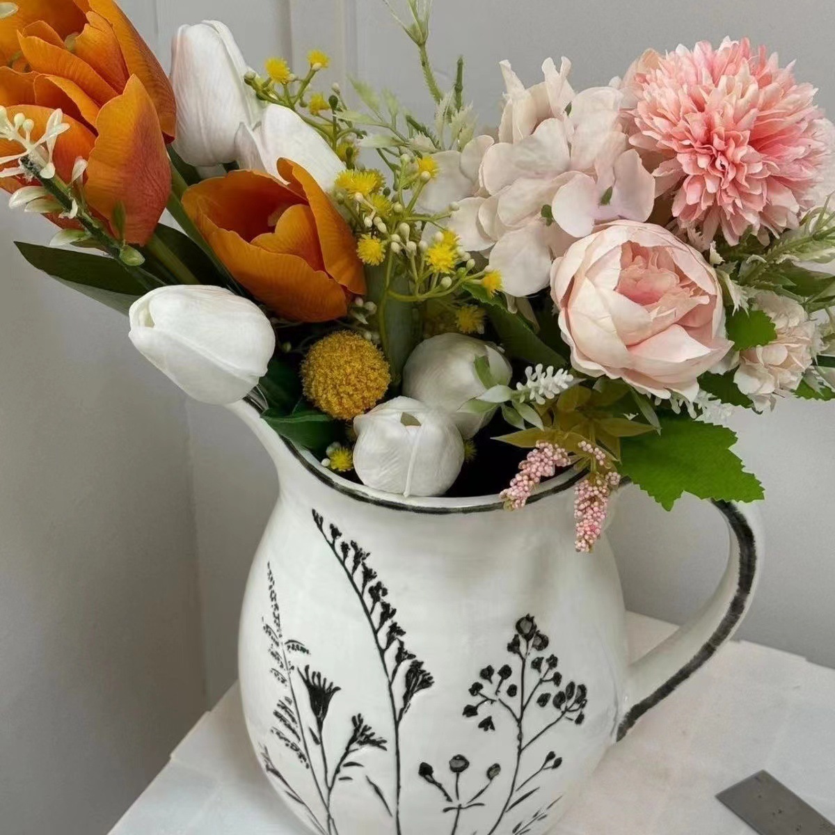 外国貿易北欧田園レトロタンポポ草花重工陶磁器花瓶花挿し大容量水筒陶磁器レトロ