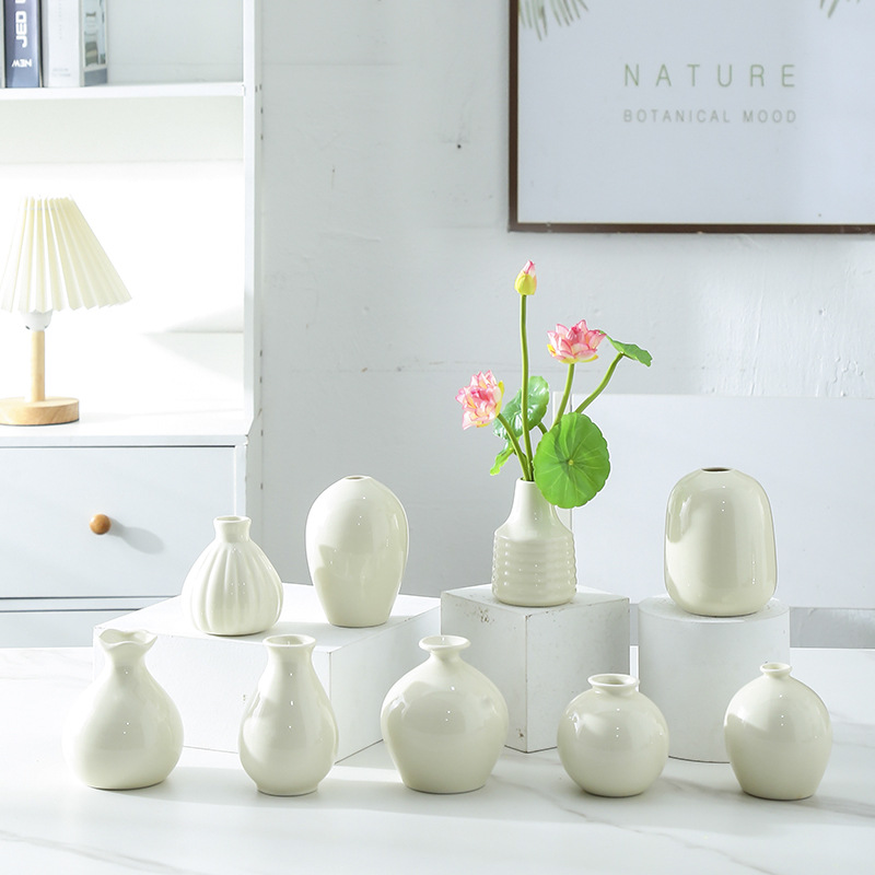創意陶磁器の小さい花瓶の小さい置物の花器の粗い陶器のミニ水培花は花瓶の禅意のデスクトップの置物の卸売りを挿します。