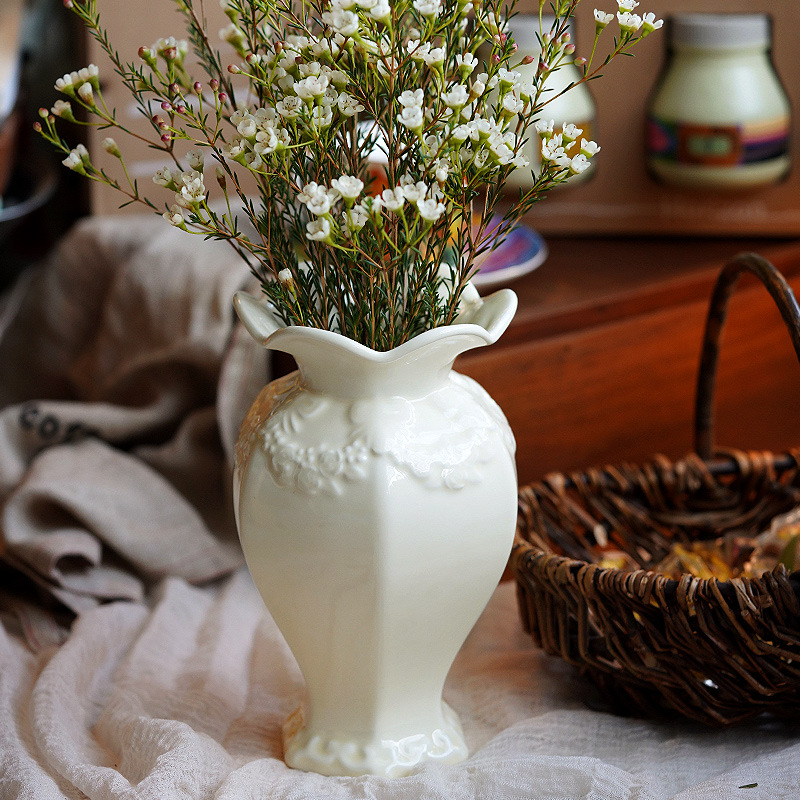 フレンチレトロな背の高いセラミック花瓶、家庭的な雰囲気、花の水耕栽培装置、コーヒーショップ、B&Bの柔らかい装飾品