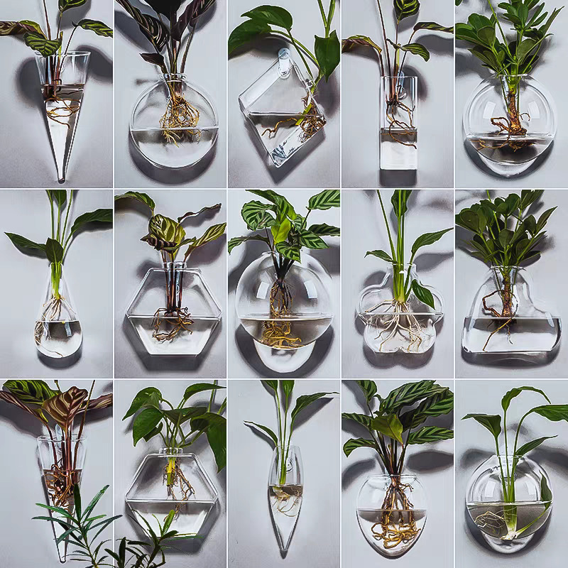壁掛け水耕ガラス花瓶透明水槽ポトス植物植木鉢クリエイティブホーム壁掛け装飾