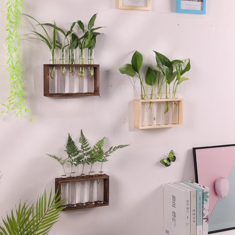 木製壁掛け式花架実木ins風壁花架木芸生け花器木製ガラス試験管花瓶架