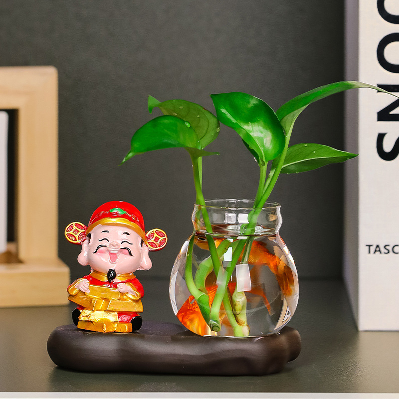 中国式招き猫水培花ガラス瓶金魚鉢事務室のデスクトップ装飾置物プレゼント緑羅水養花器