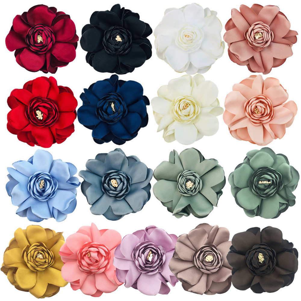 フランス式ダリアブローチサテンシフォン拷問エッジ両用ブローチヘアピン花diy髪飾り服補助花