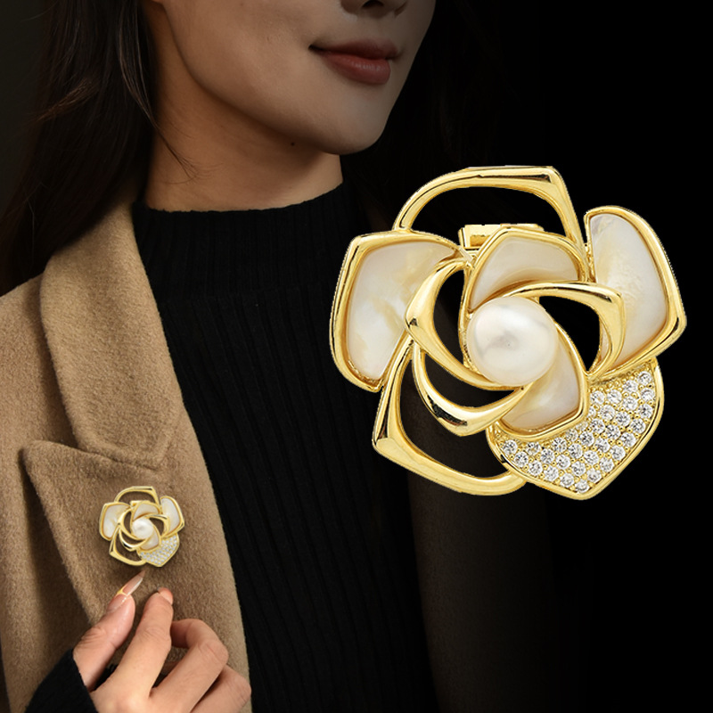 新作レディースパール蝶ブローチins風透かし彫り合金ジルコンピン軽豪華高級感精緻ブローチ