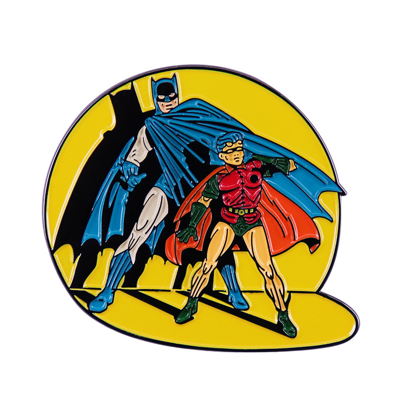 黄色のスポットライトの下のバットマンとロビンブローチdc漫画英雄バッジ