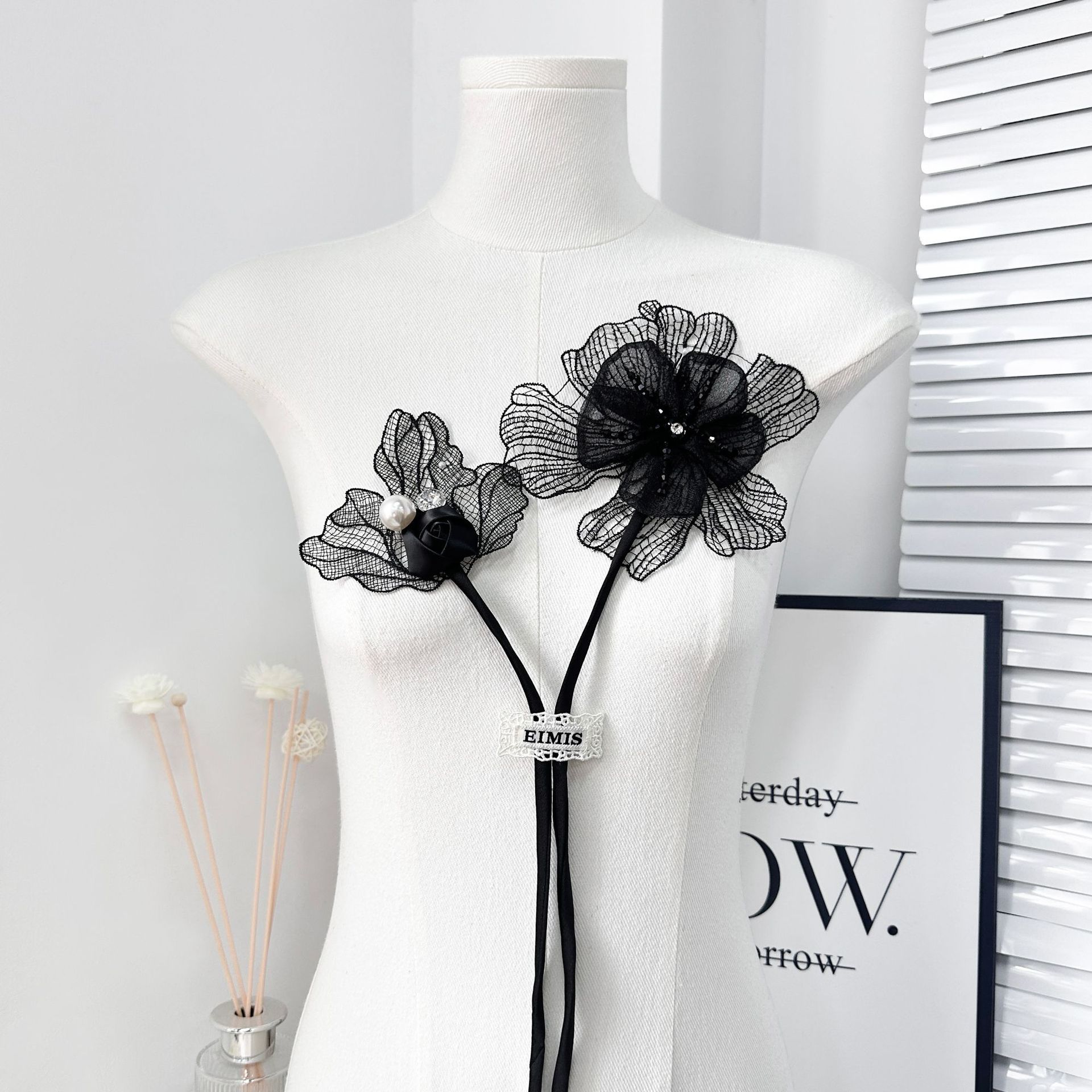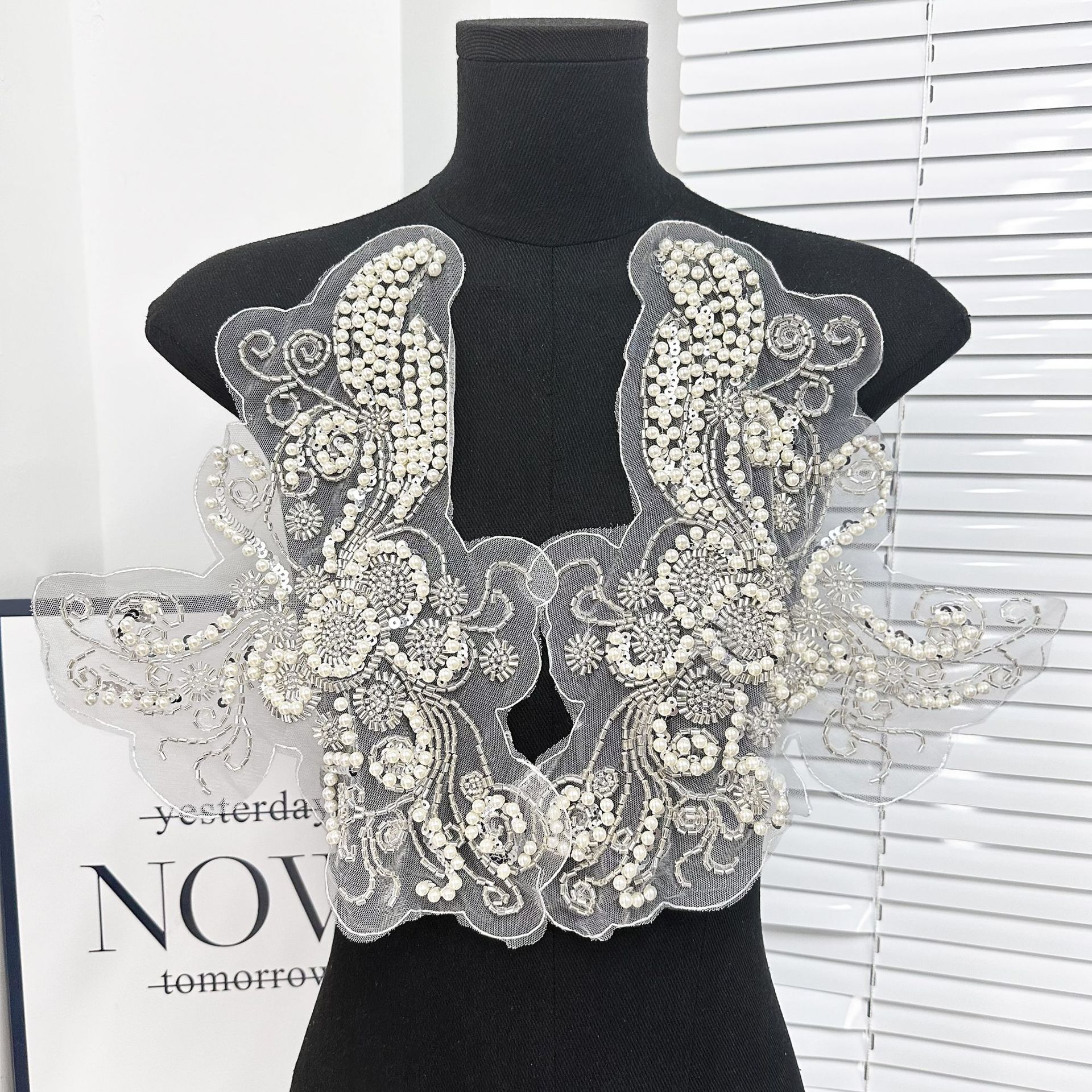黒い二重立体模造真珠水ドリル網糸レース花ロリータ手作りウェディングドレス装飾