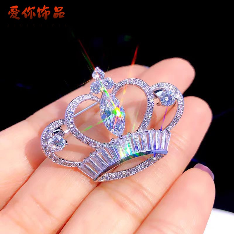 クラウンのブローチ、ジルコンの胸の花、日韓の高級な雰囲気がシンプルです。