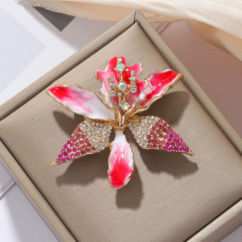 新商品の精巧なエナメルの幽蘭の花のブローチの高級な優雅な気質のスーツは紫色の花の女性の胸の花のピンを飾ります。