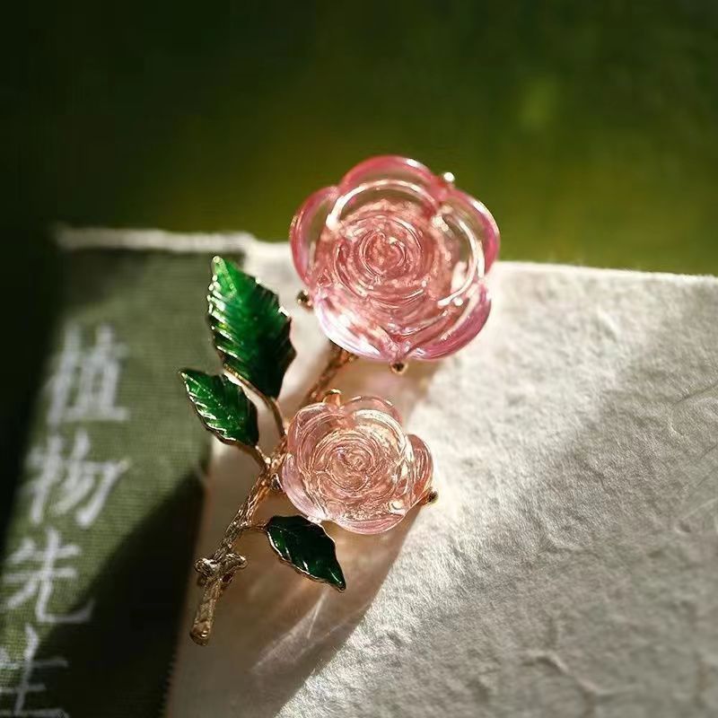 バラの花水晶ブローチ女性ファッション気質花卉ピン小清新植物ピンアクセサリークロスボーダー卸売り