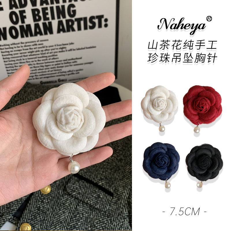 椿ブローチ新しいハイエンドオーガンザフラワーブローチ DIY 衣類スーパー妖精気質アクセサリーブートニア