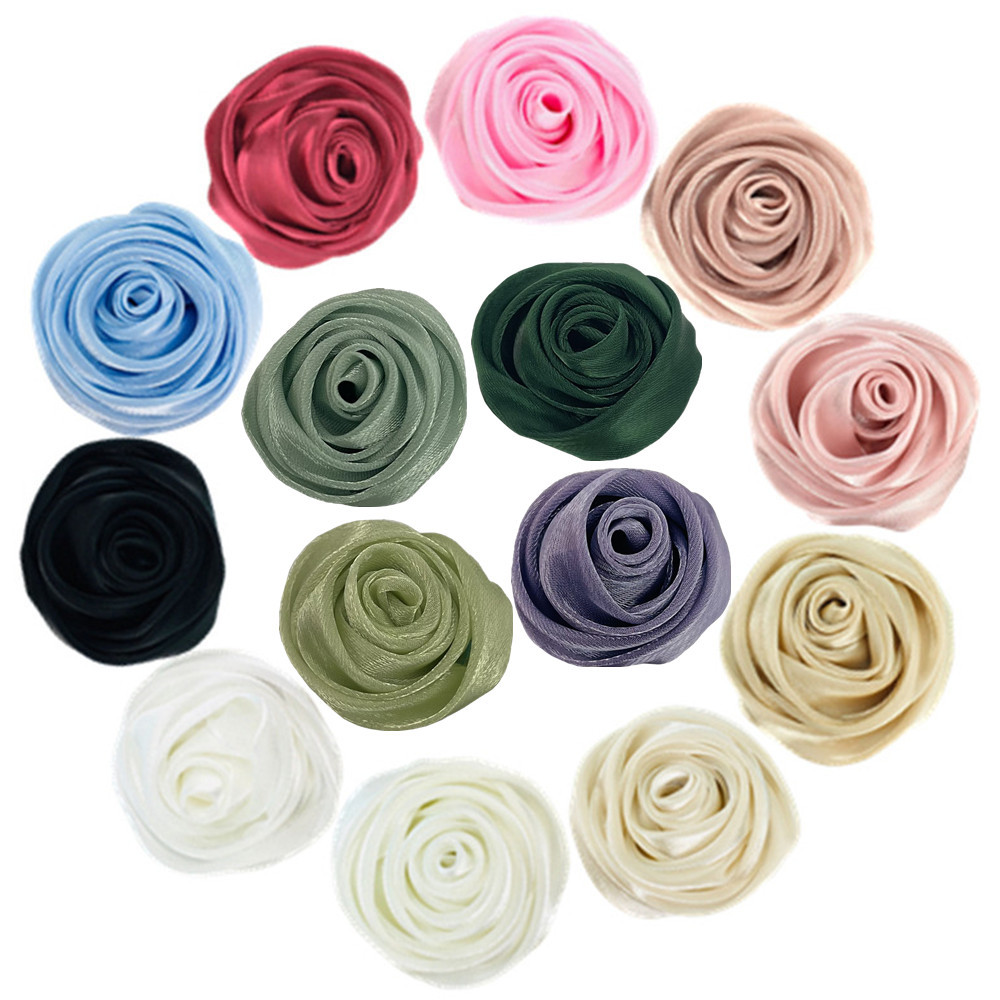 3cm百合サテン多層バラ手作り布芸花蕾靴花帽子花髪クリップアクセサリー