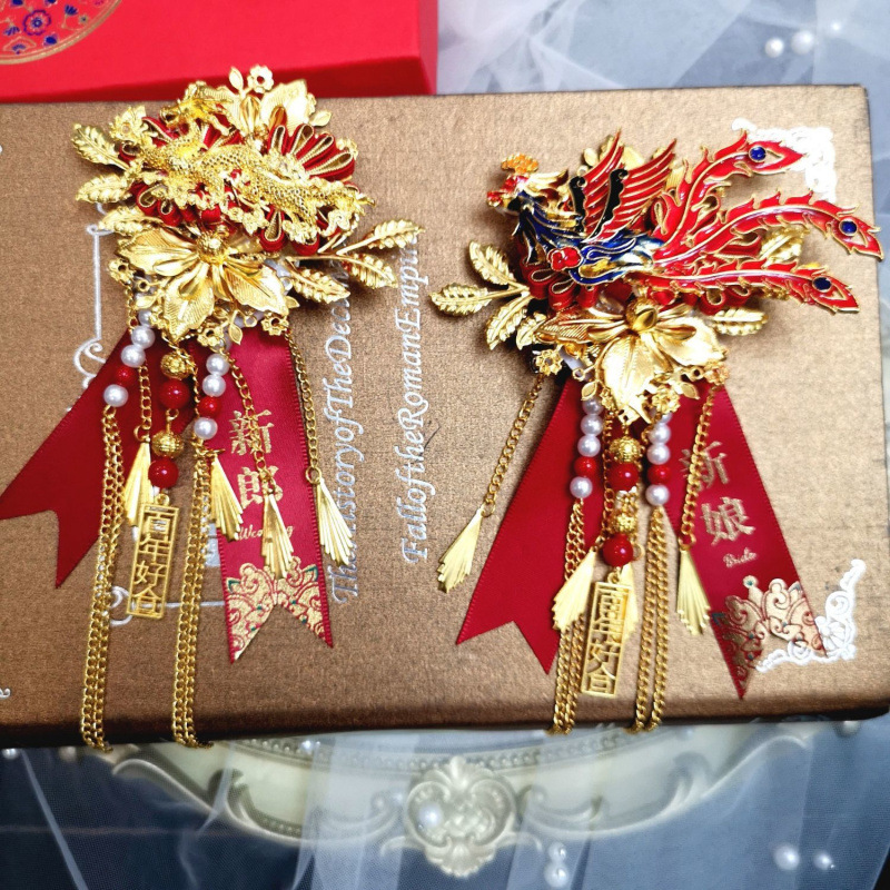 結婚胸前花セット新郎新婦結婚式胸花高級2024豪華版中国式結婚式秀イネ服