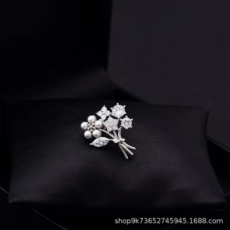 ファッションの真珠のブローチの女性の韓国はダイヤモンドの胸の花のピンのカーディガンを入れて肩を掛けて秋冬の雪の花の襟の針を掛けて装飾品の潮を配合します。