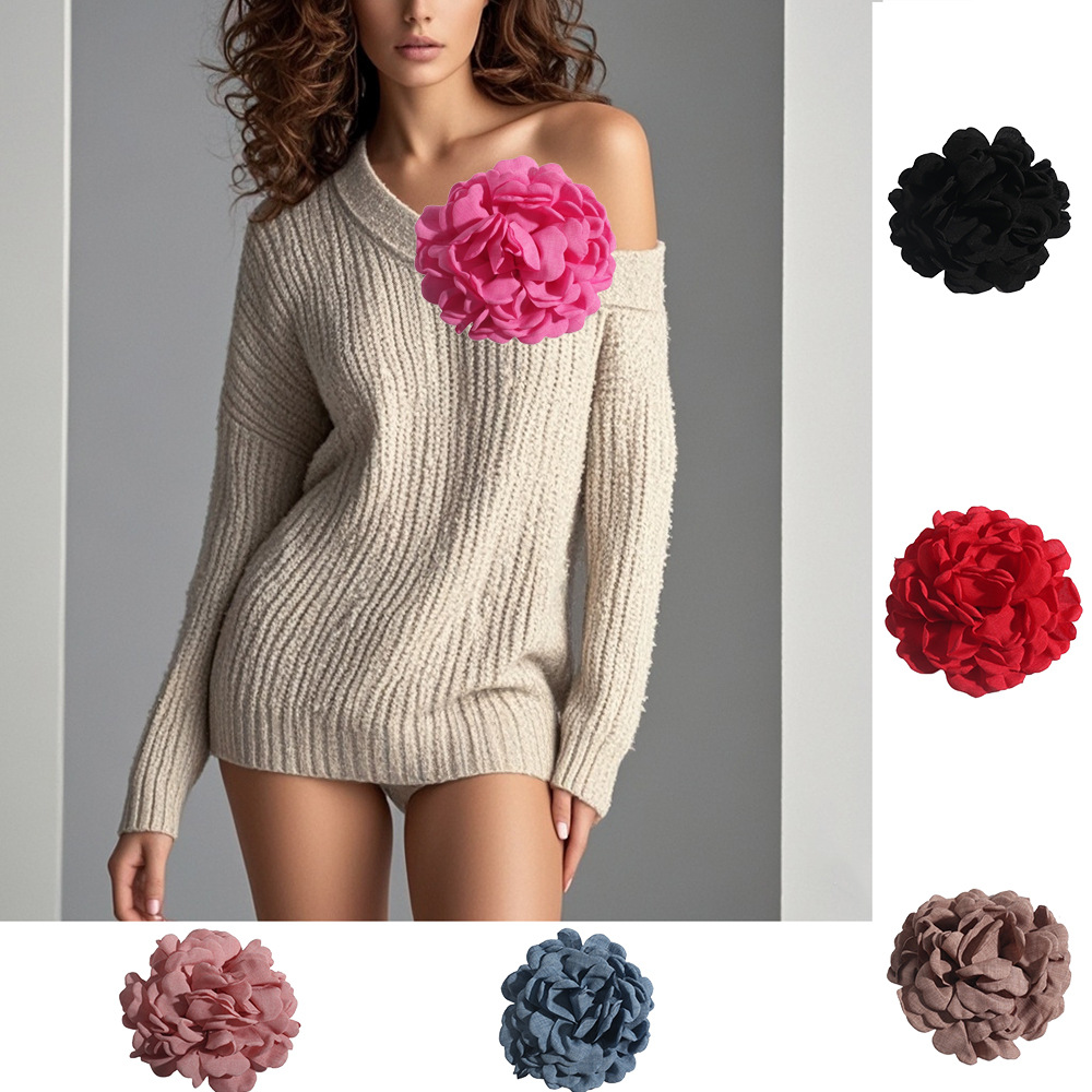 国境を越えた新しい手作り花14cm布芸ブローチさんはセーターを着て布芸の胸花を着ている