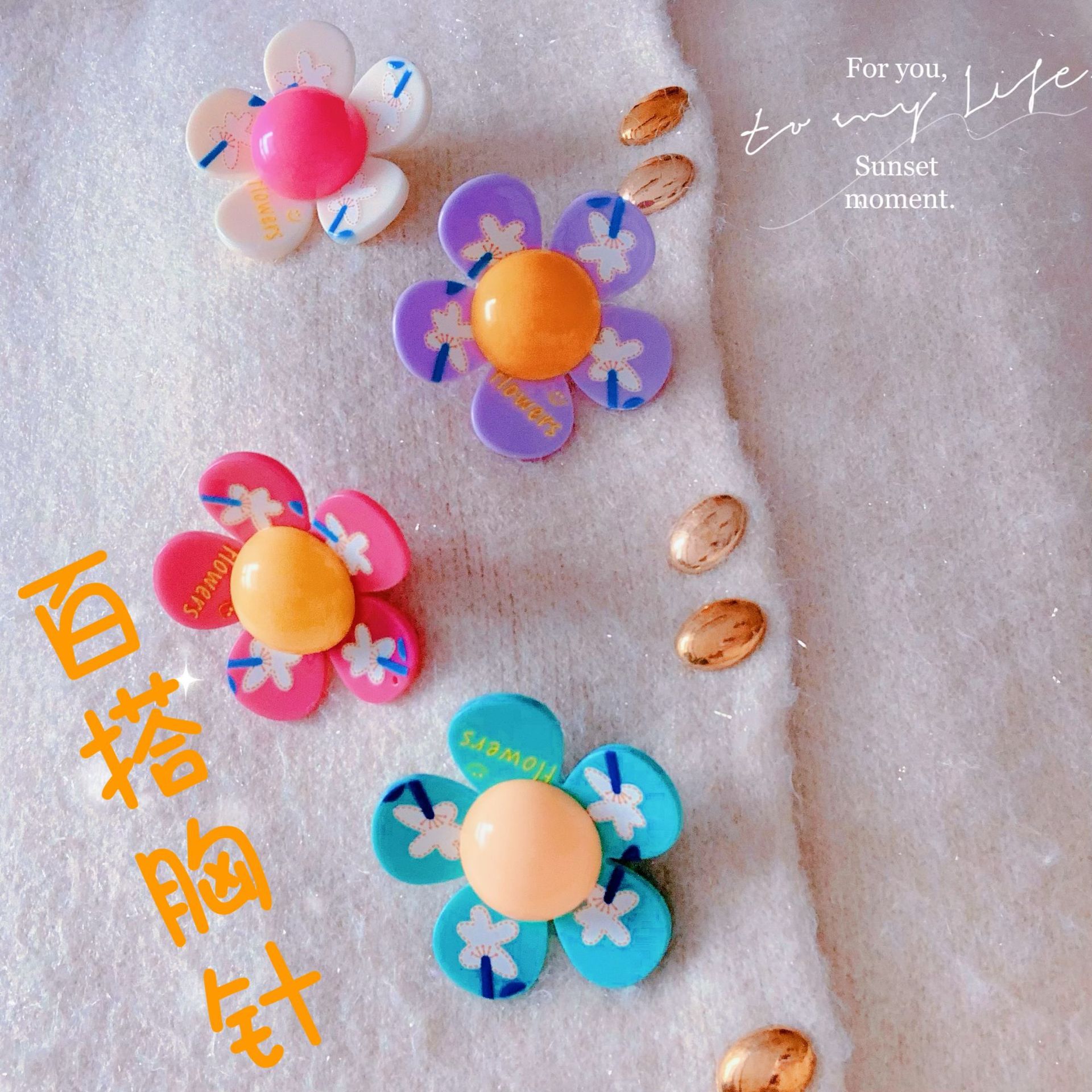 クリエイティブアクリルマカロン浮き彫り甘い花かわいい五弁花ブローチ靴ボタンかばん装飾品