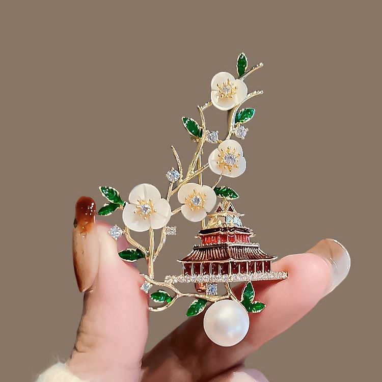 天然貝母梅ブローチ高級女性レトロ大気胸花真珠ピンチャイナドレス漢服装飾品プレゼント
