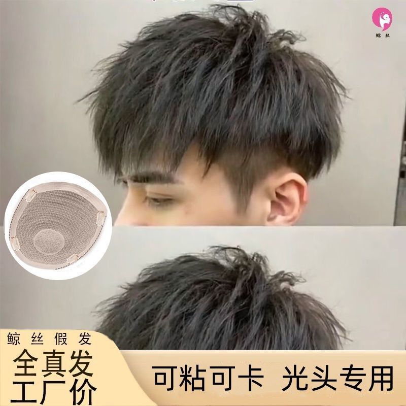 男性用ショートヘアウィッグ、スチールクリップパーマウィッグ、韓国風ハンサムモーガンパーマ、テクスチャードパーマ、男性用インビジブルライトリアルヘア