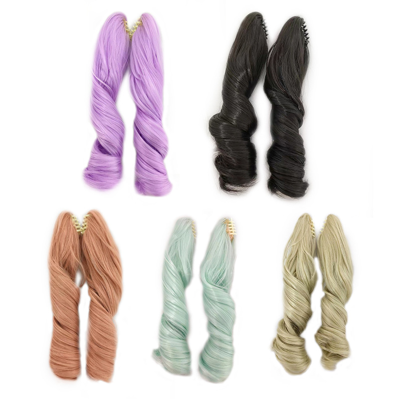 20cmコットン人形高温糸かつらポニーテール小虎口クリップクリップ式ロングカール馬尾お下げ多色