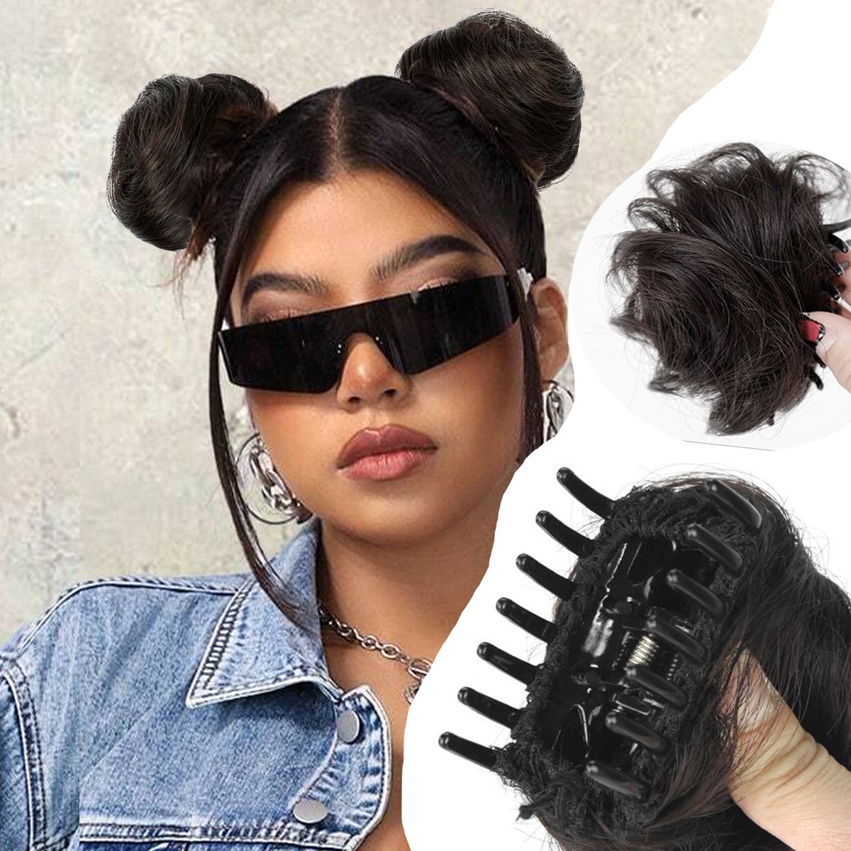 丸子のかつらは挟み式の半分の髪の女性の後頭部のクリップの頭をつかんで飾ります。