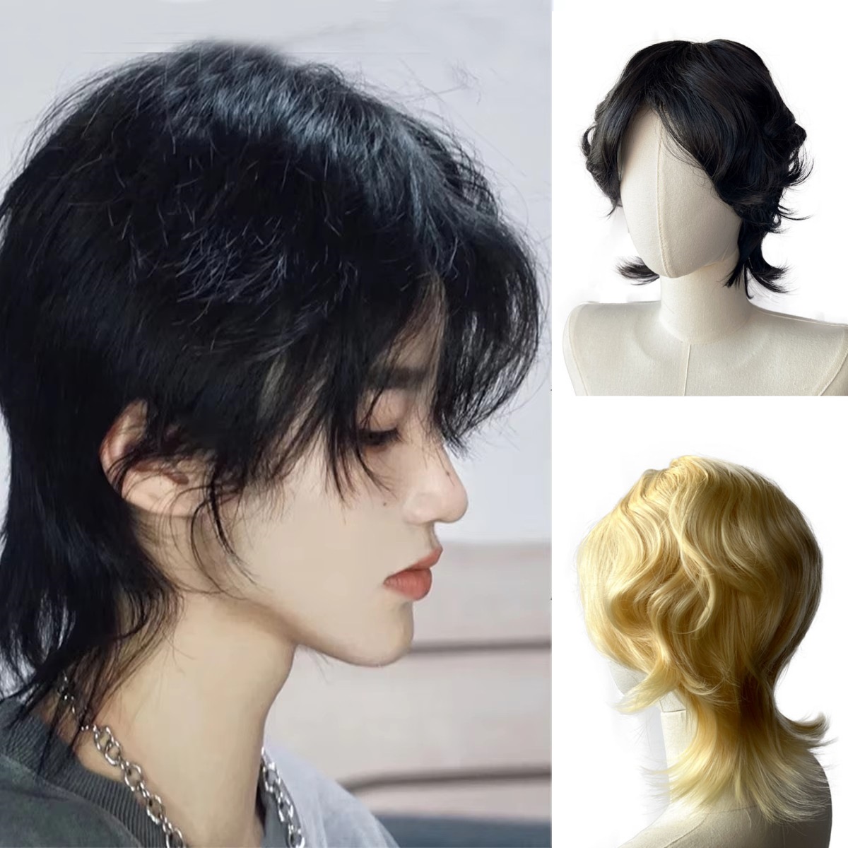 吉友貿易行かつら短髪狼尾魚頭少年感男格好いいファッションクール全頭セット式