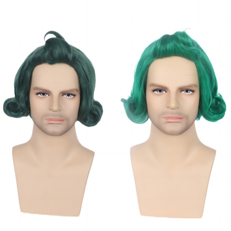 欧米の男性のかつらのファッションのショートヘアの精霊wigの緑色のかつらの工場の現物は卸売りして1件の代行を代行することができます。