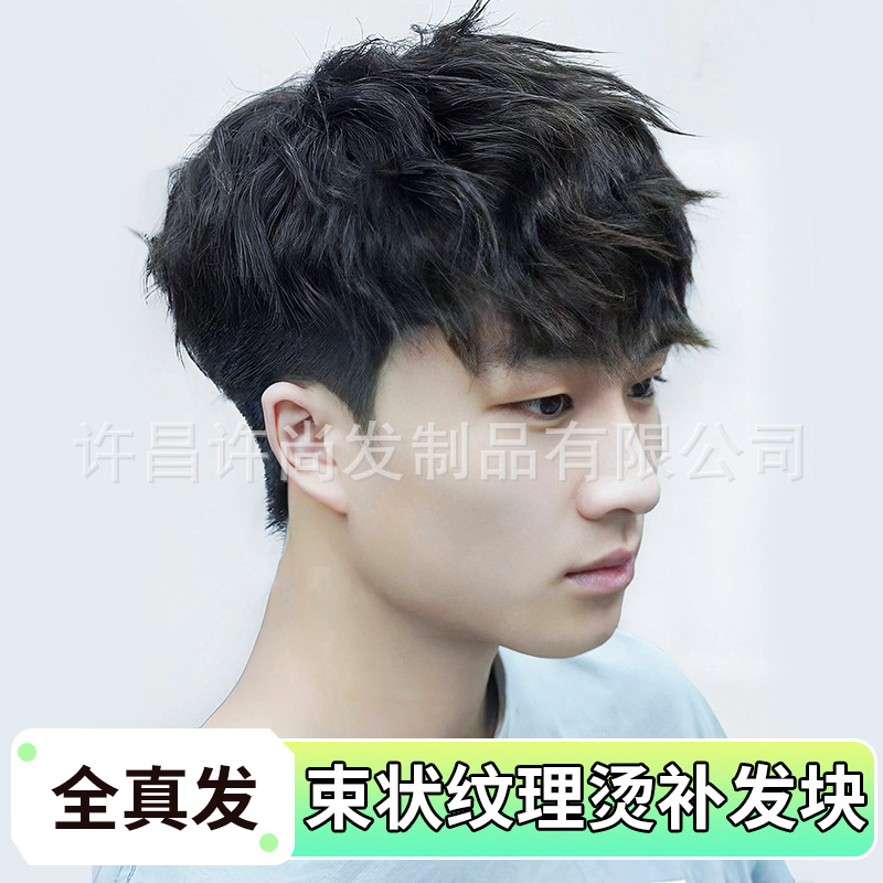 假发男短发束状纹理烫卷发韩版帅气男士假发片自然透气头顶补发块