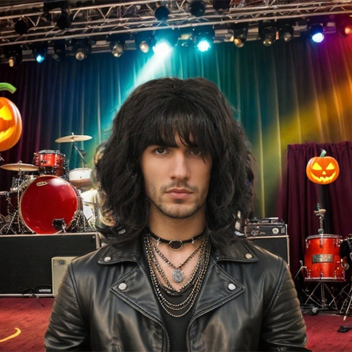 ヨーロッパとアメリカの貿易ウィッグ 80S 3 色メンズミッドパートショートカーリーヘアメンズパンクロックウィッグ