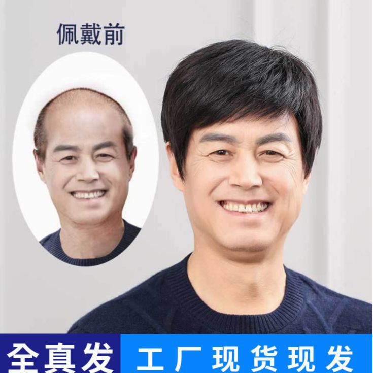 3号ネット+ディクシアンメンズヘアピース許昌かつら工場人毛隠し白髪隠し地中海型薄毛ショートヘア