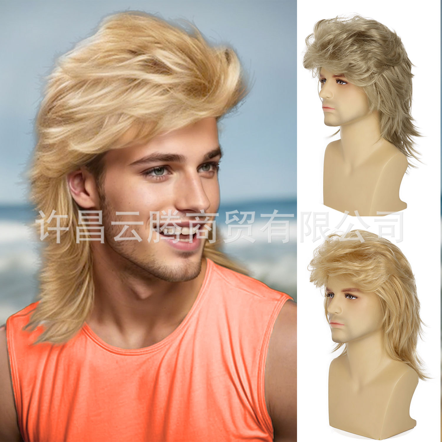 欧米の新型男性かつら韓国版男性髪ハンサムショートヘア金色ショートストレート髪斜め前髪かつらアニメcos