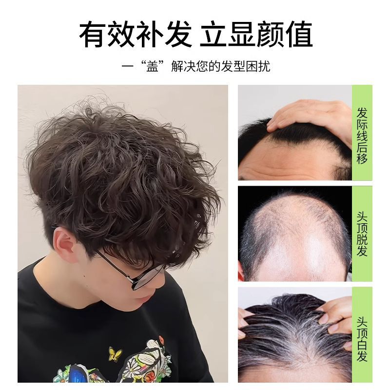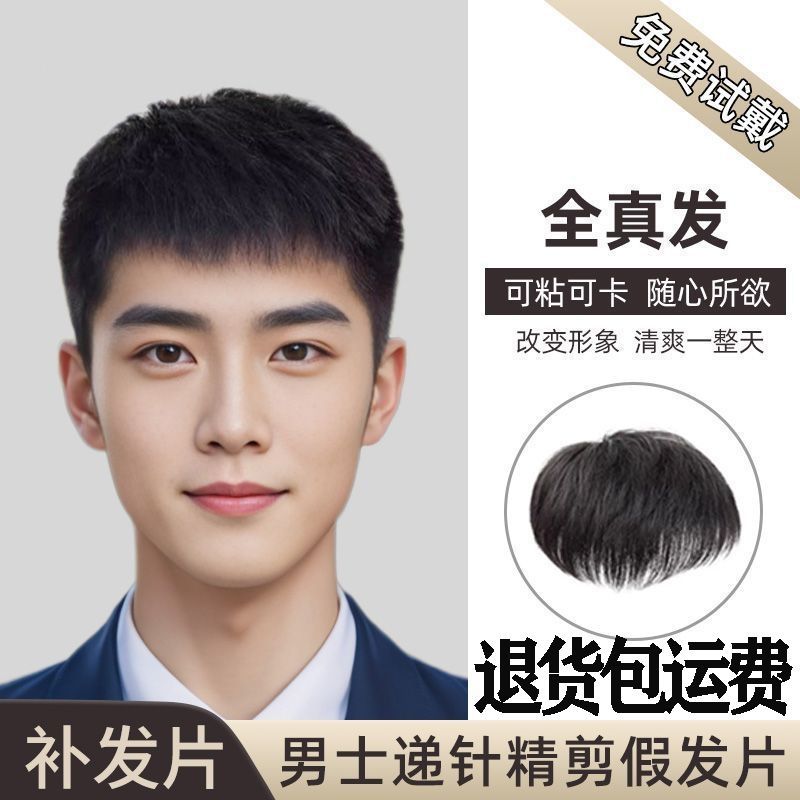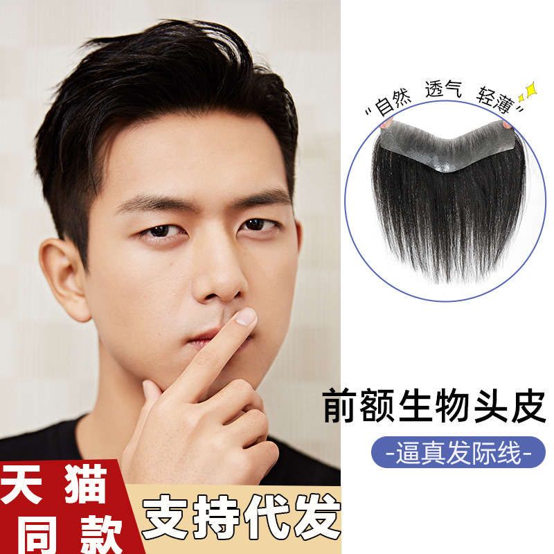 发际线假发贴男士前额生物头皮补发片真人发丝m型额头斜刘海逼真