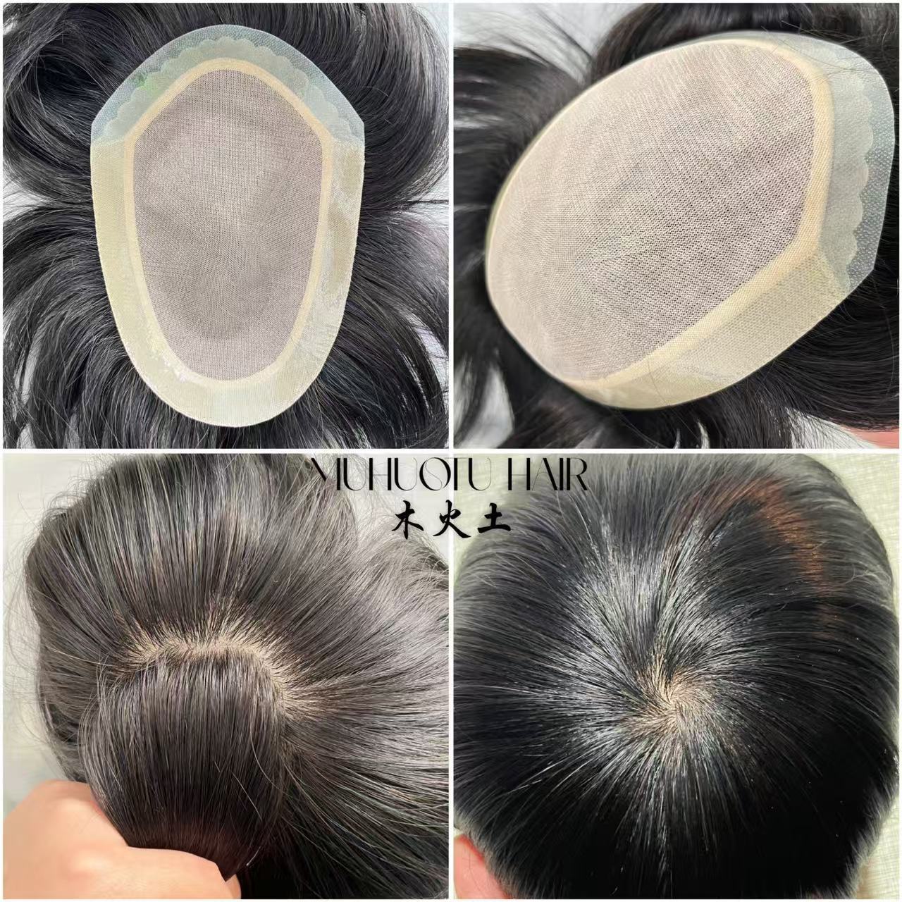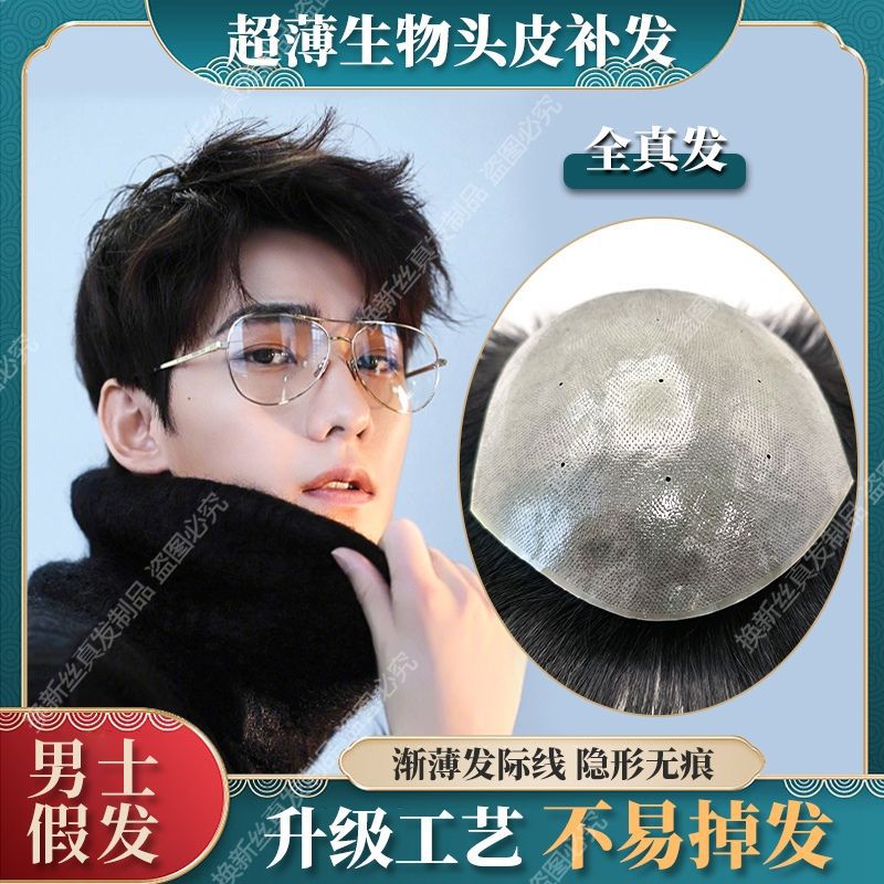 男性用かつらを手渡して、超薄型で丈夫な通気性があります。
