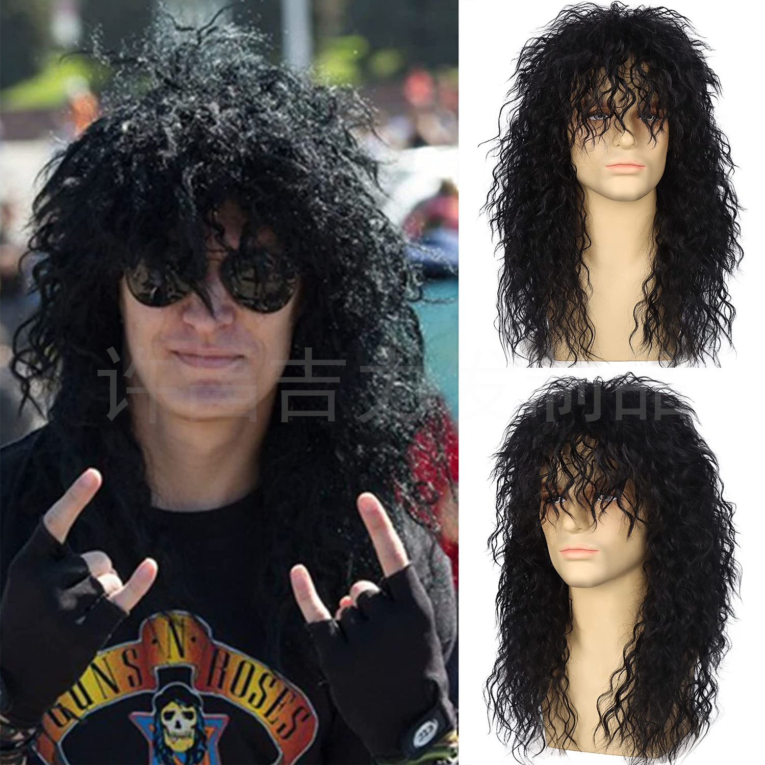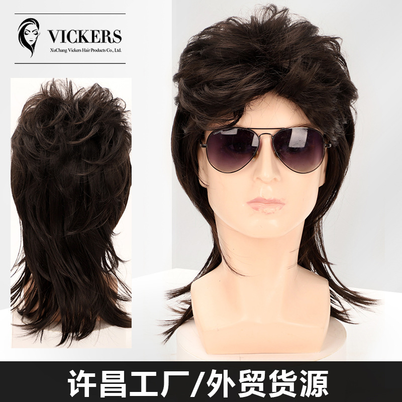 外国貿易欧米男性かつら80sパンク長カールハロウィーン重金属ロックかつらカバー