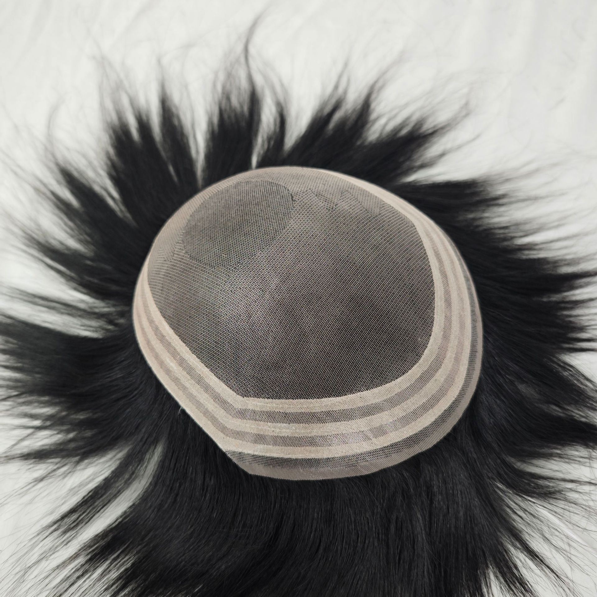 男性用かつらパッドの髪の根元の頭の上に髪を追加します。