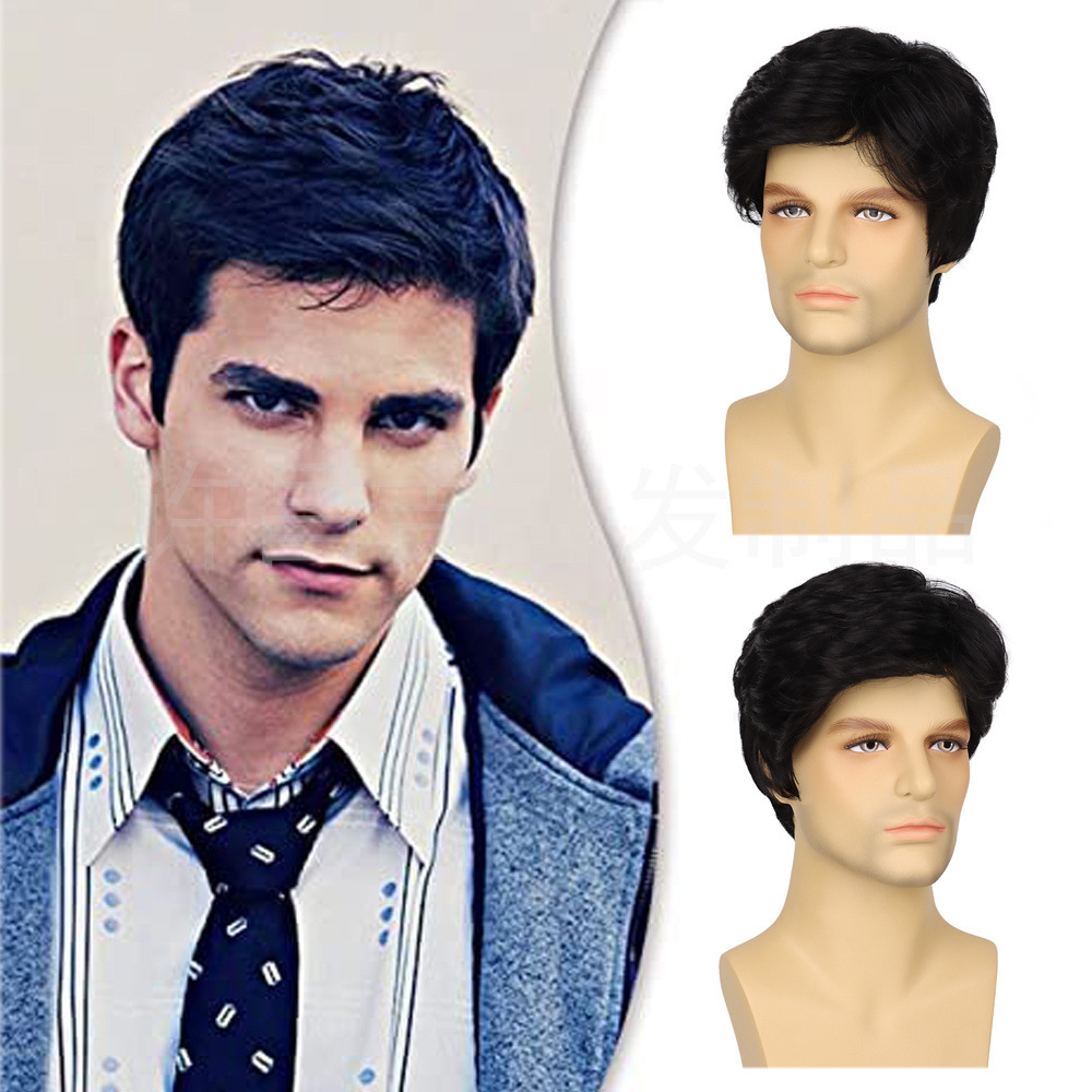 男性用ウィッグ ショートストレートヘア ハンサムで自然な男性用フルウィッグ 微カットの前髪付き 日常使いにふんわり自然なショートストレートヘア