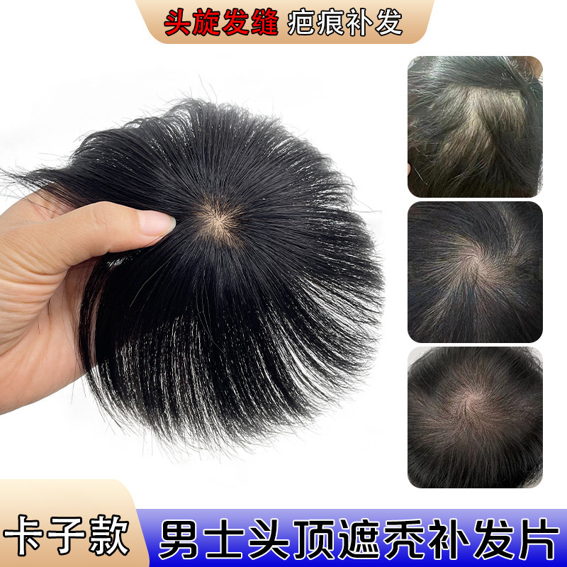 男性用ショートヘアウィッグ、完全本物の髪、男性用シームレスインビジブルウィッグ、粘着性とカッティング可能な軽量ヘッドトップヘアピース