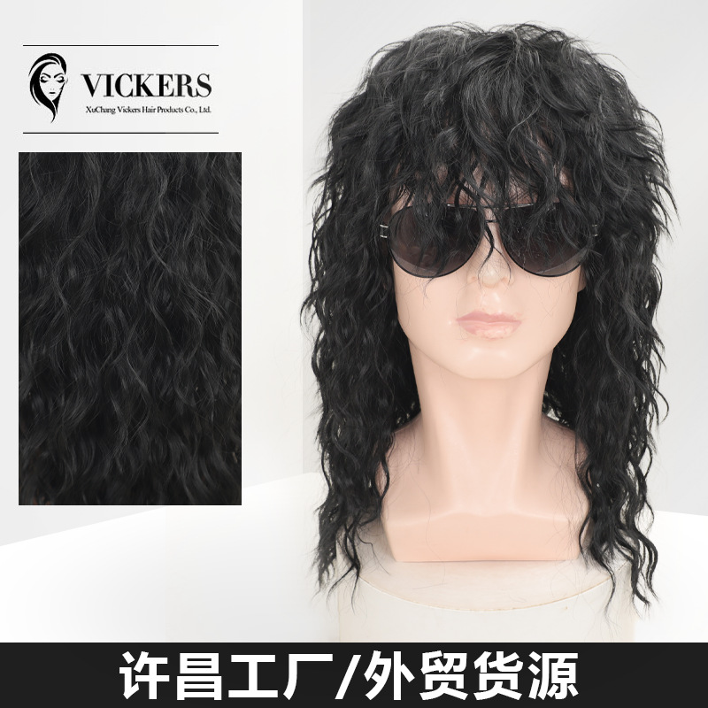 アマゾンは欧米の男性のレトロなロック化学繊維のかつらを爆発させました。