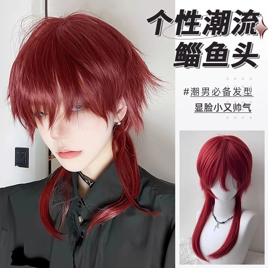 狼の尾のかつらの男の金色の中で長い髪の日本の男子学生の中で魚の頭の米の白色の万用のcosの全頭のカバー式を分けます。