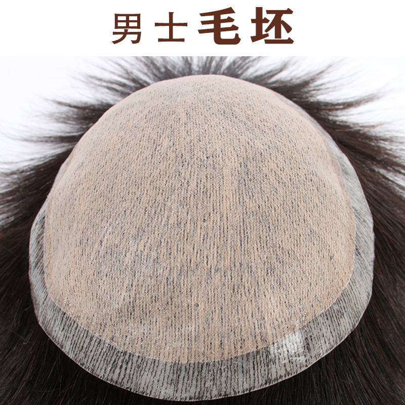 男性のかつらは全真の髪を全部手で編んでいます。薄くて通気性があります。自然に若くてかっこいいです。