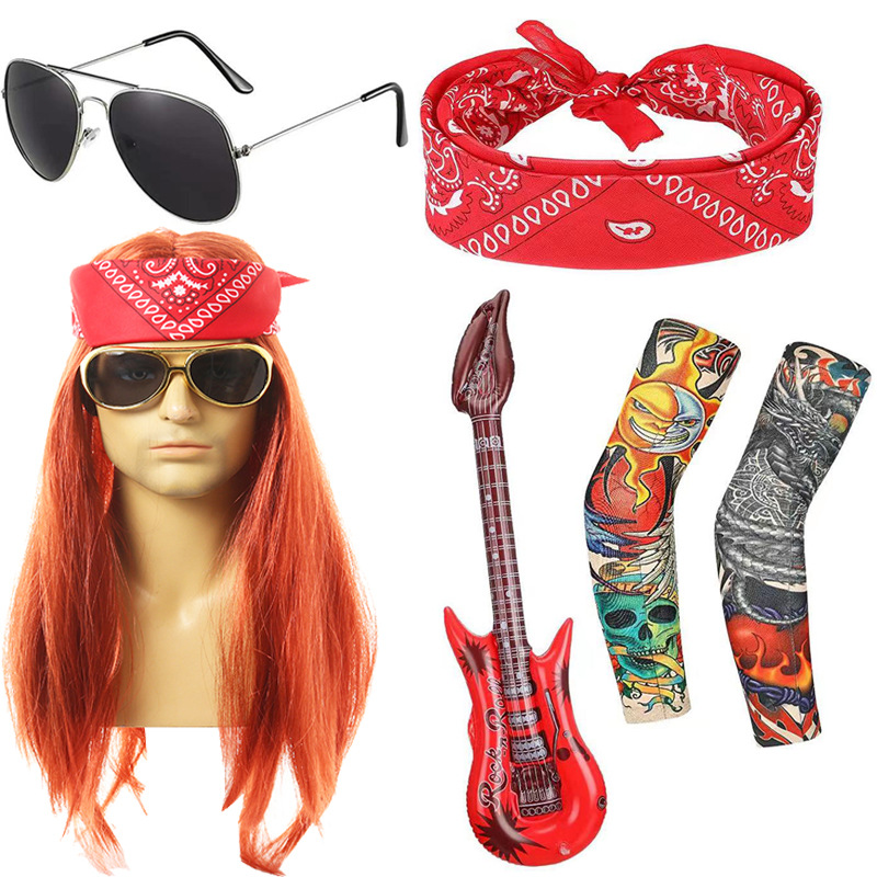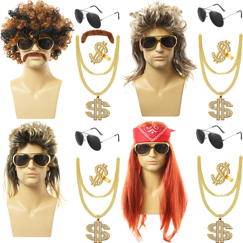 ハロウィーン80s年代レトロcosコスチュームパンク黒かつらディスコ欧米男性ロックカール