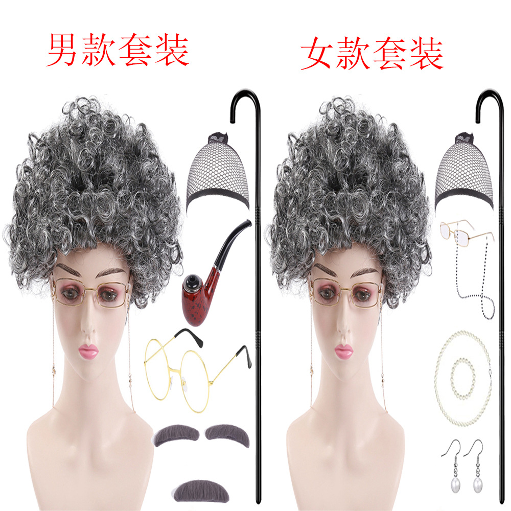 ハロウィンおじいちゃんウィッグ、ダンスパーティー、クリスマスパフォーマンス小道具、中高年男性仮装パーティーウィッグ