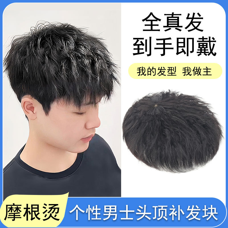 栗子頭ウィッグ メンズ ショートヘア 韓国風 人毛100% 本物の人毛 インビジブルヘアピース トップヘアピース メンズウィッグ 人毛製