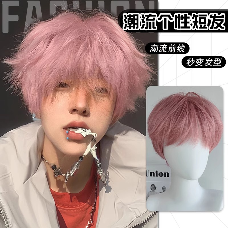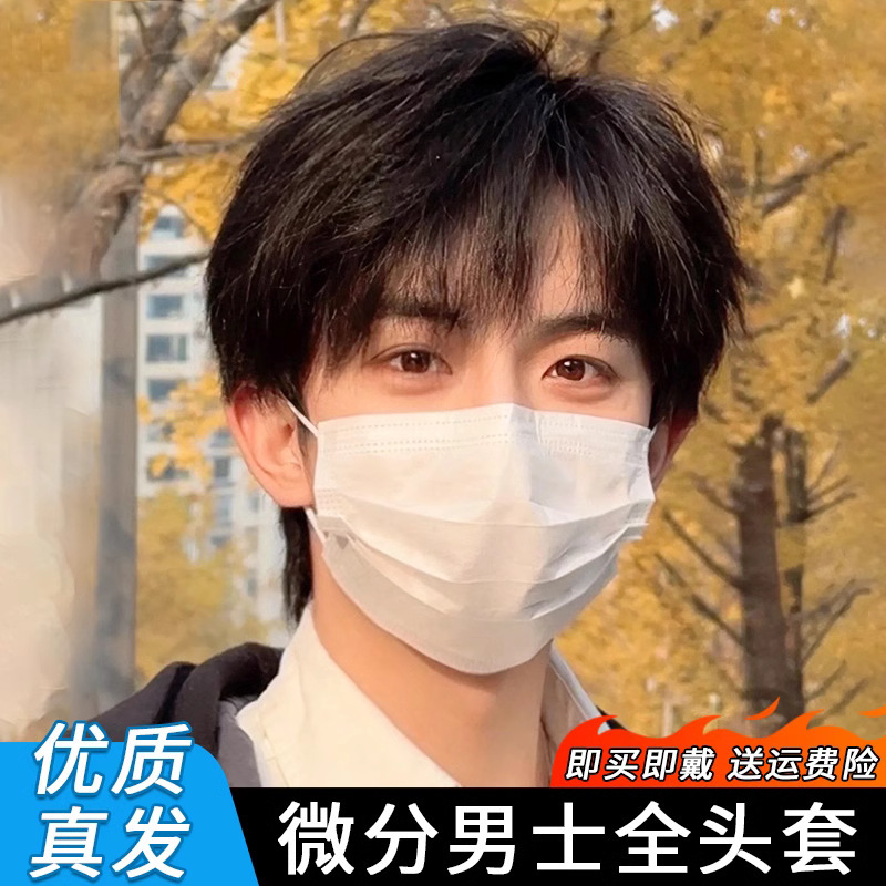 スポット卸売り男性全頭セット微分砕蓋短髪斉前髪韓国版ハンサム男性日常ふわふわセット