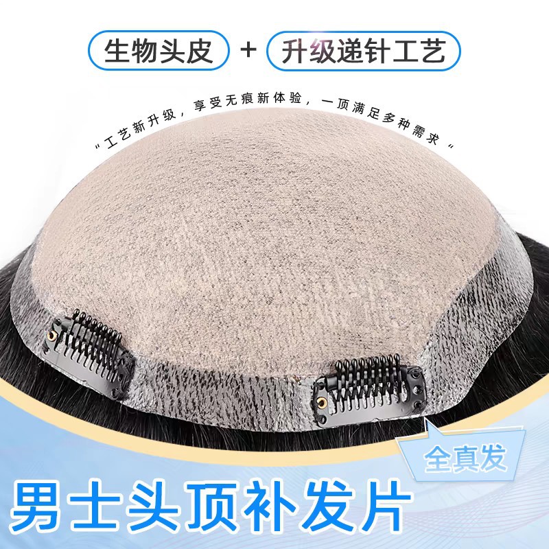 針を刺した生物は通気性が見えないので、男性の頭皮の頭の上に人の髪のかつらを再発行します。