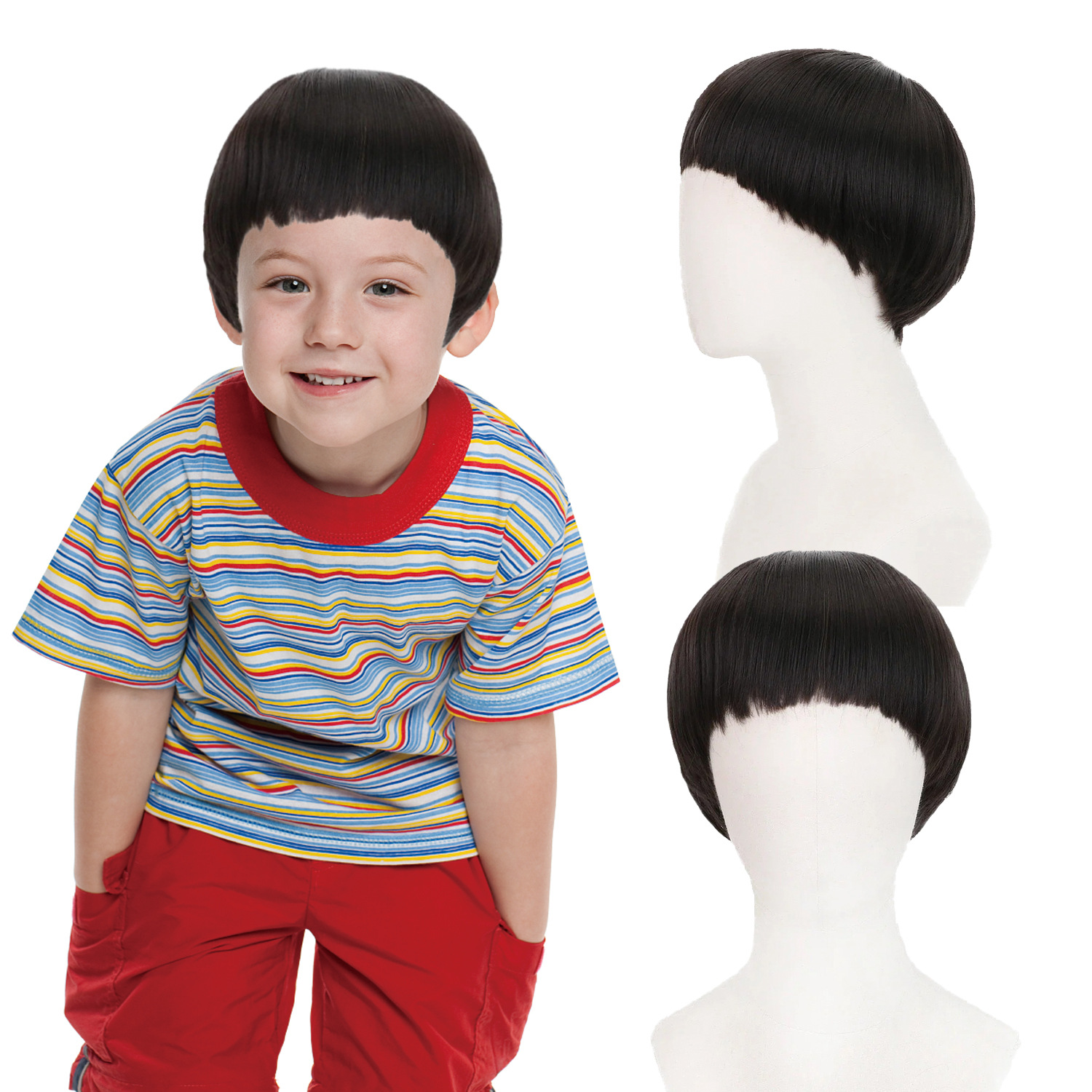 男の子用のトレンディなウィッグ、ハンサムな男の子のショートヘア、中間分け、韓国風ストレートヘア、ファッショナブルなフルヘッドギア、微細な髪の男性
