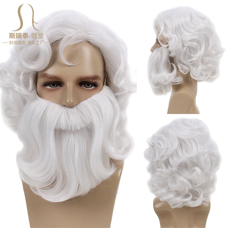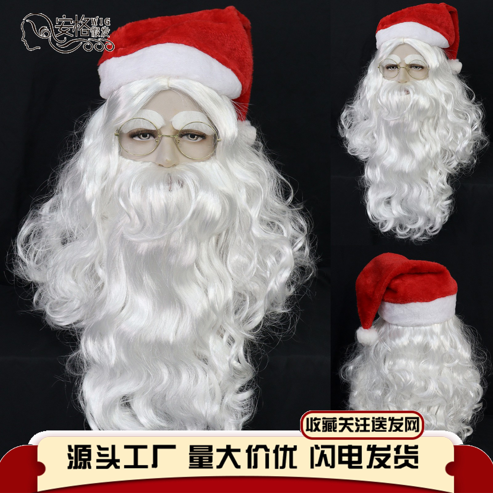 ヨーロッパとアメリカのクロスボーダーホワイトサンタひげかつらフルセットAmazon sheinTKウィッグドロップシッピングウィッグ