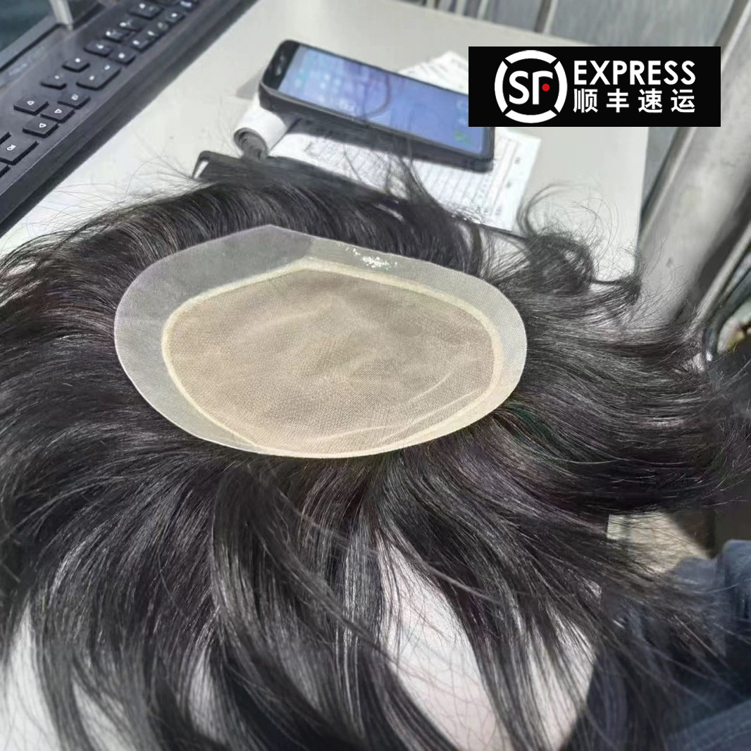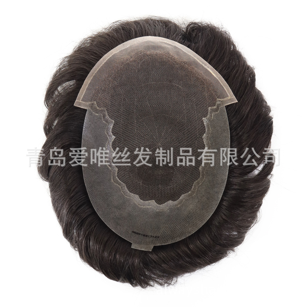 外国貿易用本物人毛メンズヘアピース手編みイミテーションネットQ6モデル青島工場在庫あり