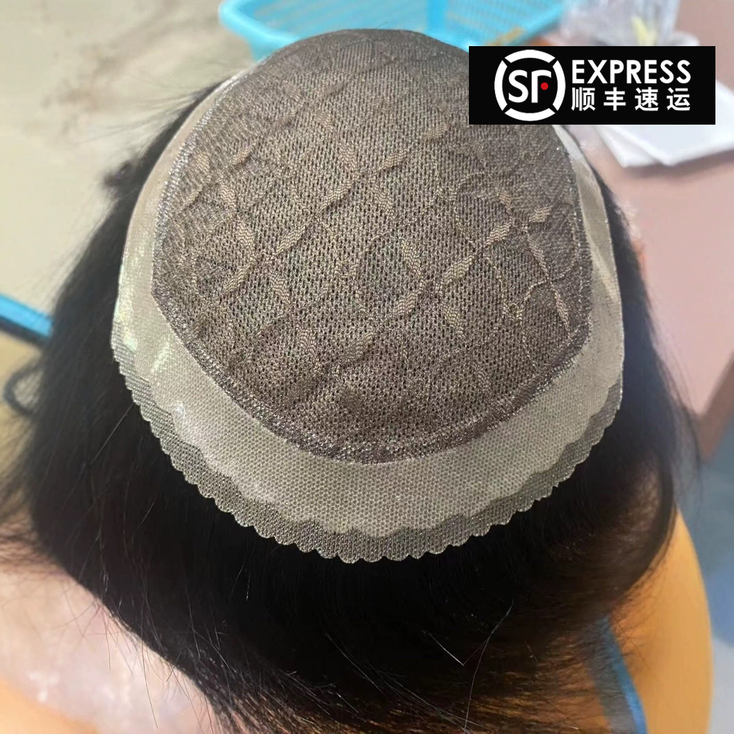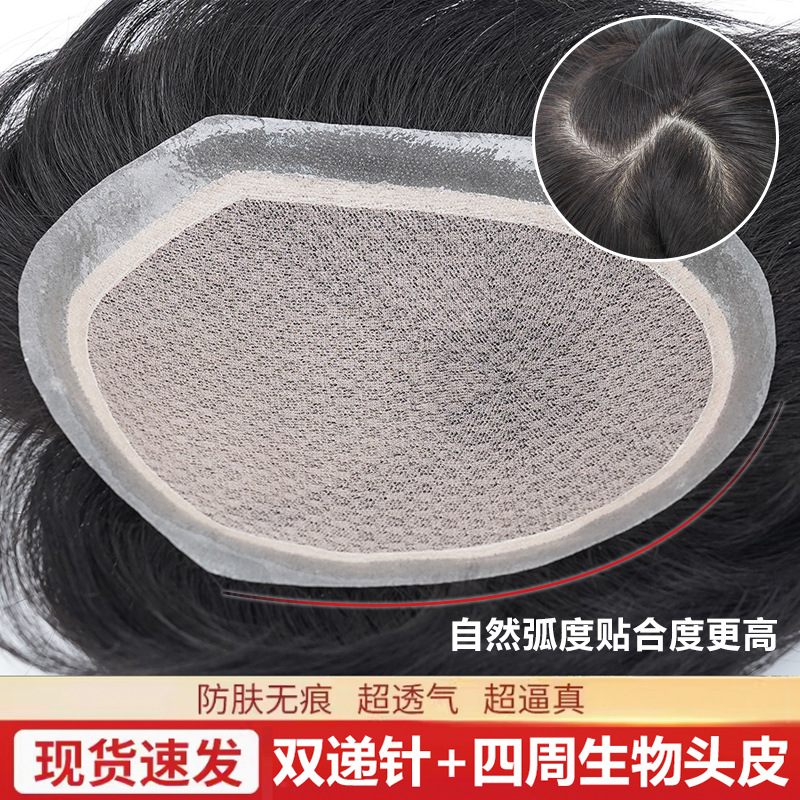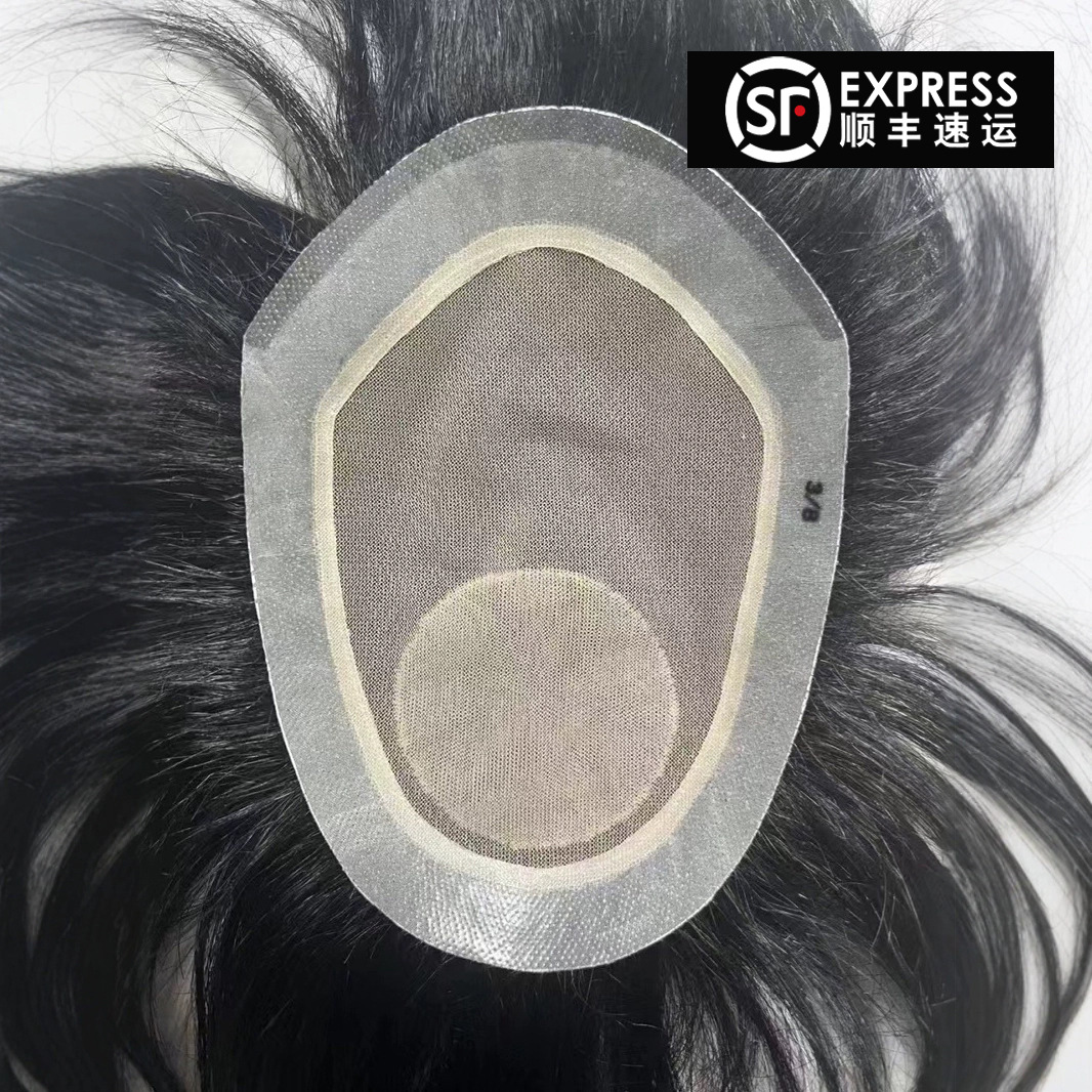 メンズかつら再ヘア前頭皮V針三面npu針メンズハゲブラック再ヘアブロック