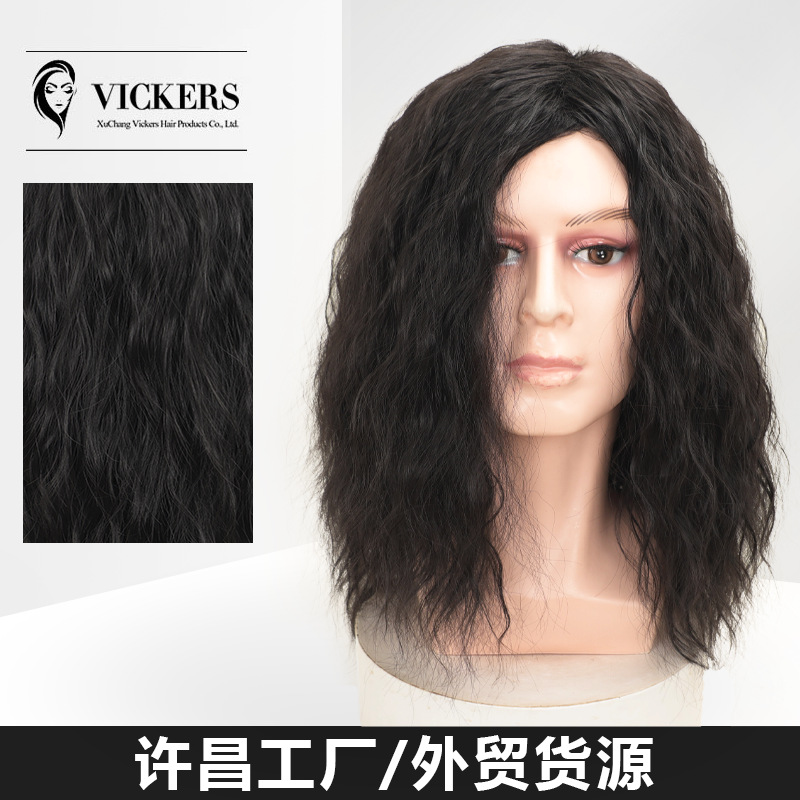 国境を越えた欧米の男性のかつらの外国貿易の新型のハンサムな男性の髪の多色の小さい巻きのショートヘアの化繊の頭のカバーの卸売りは代行します。