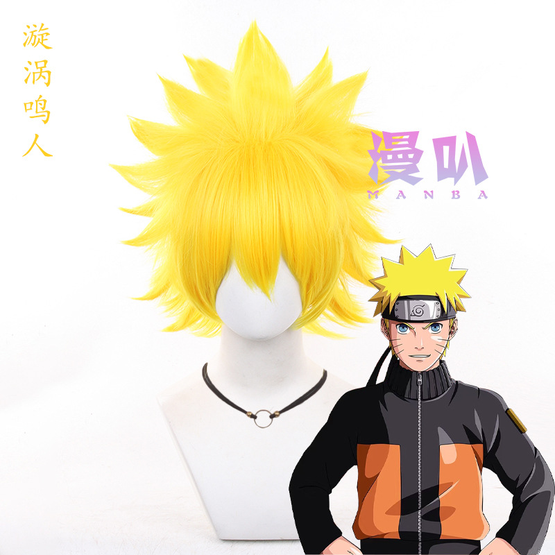 【漫漫ラッパ】ナルトのうずまきナルトのcosのかつらは毛の頂を打って反り返って短い髪を上げます。